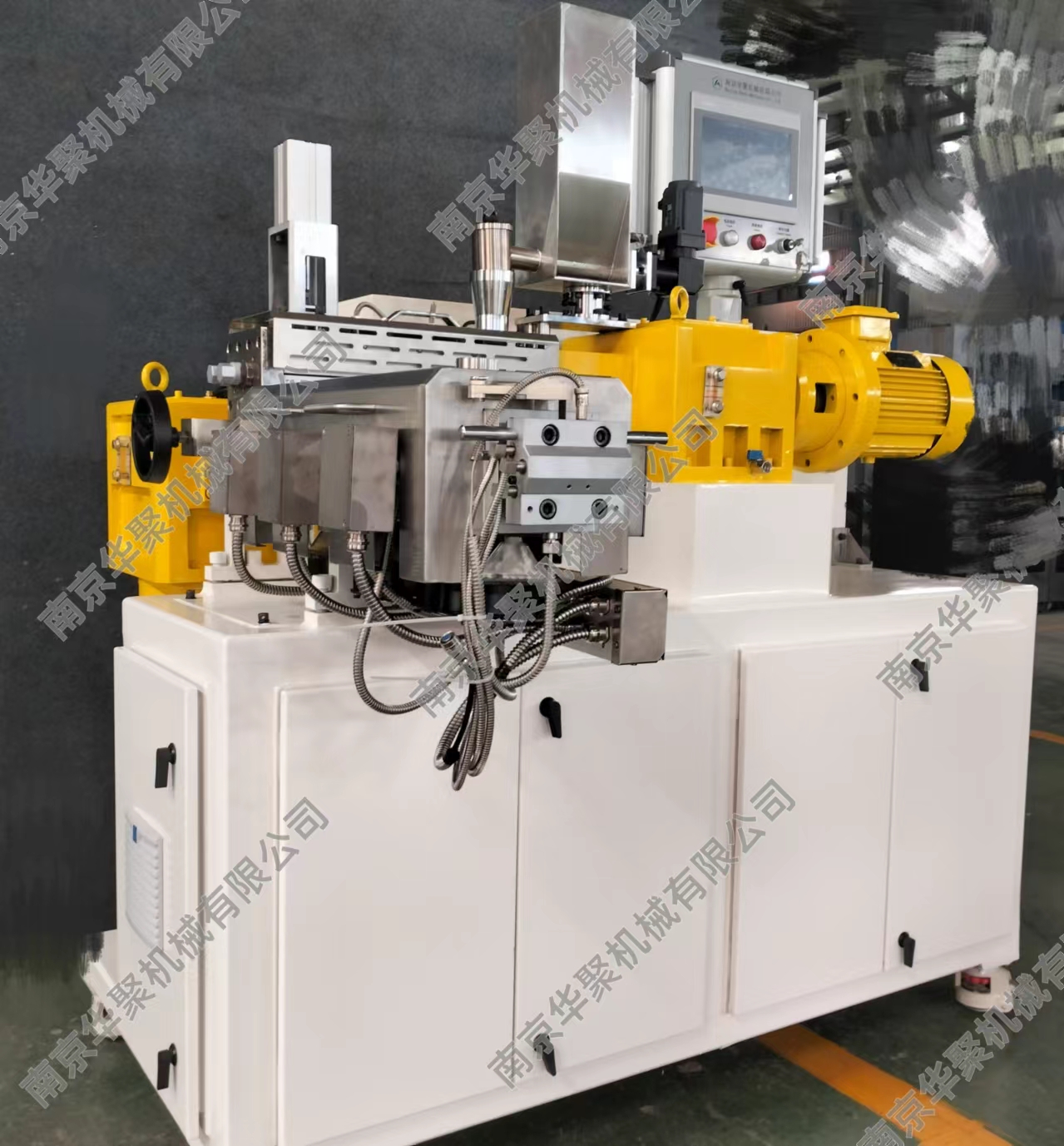 1、占地面積小,主機長寬高為1600X1350X1650mm,帶有移動腳輪。 2、集成連續(xù)密煉與雙螺桿的優(yōu)勢特點,連續(xù)式擠出,方便各種研發(fā)測試使用。 3、能耗低,裝機裝機功率22KW,實際操作功耗更低,類似一臺中央空調功率。 4、產量范圍1-10Kg/h,方便少量物料測試,伺服電機喂料驅動更穩(wěn)定精確。 5、一體化設計,電控冷卻系統(tǒng)全部集成,無需額外安裝,接電即用。 6、連續(xù)密煉機可翻轉腔體和雙螺桿快開機頭設計,方便清理及檢查維護。 7、全系統(tǒng)安全連鎖,觸摸屏操作,多處安全停機保護,使用更放心。 8、整機1噸,方便裝卸。